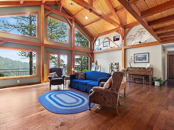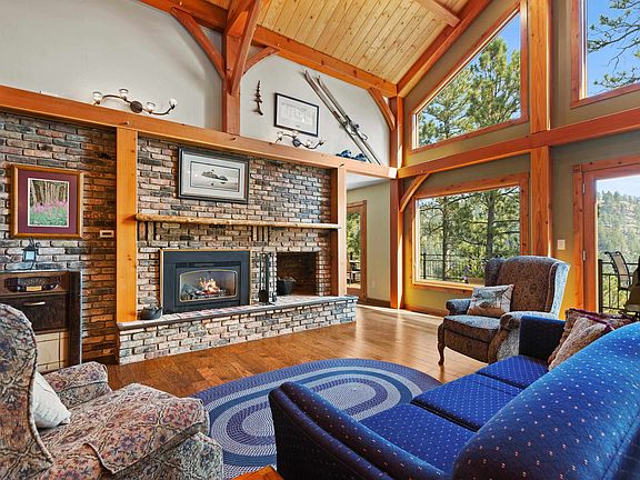 Welcome to this stunning fully remodeled timber frame home, nestled on a serene 12-acre lot, boasting unparalleled natural beauty and breathtaking canyon views. This immaculate 3-bedroom, 3-bathroom residence exudes luxury and comfort with heated tile floors throughout each of the full bathrooms, providing a touch of elegance and warmth. Step into the heart of the home and discover a well-appointed kitchen featuring exquisite granite countertops, soft-close drawers and pullouts, complemented by a spacious island - a true haven for culinary enthusiasts. The main level hosts all three bedrooms for utmost convenience, ensuring seamless living. The expansive 1,000 square foot deck crafted from Tiger wood beckons outdoor entertaining and relaxation, offering a perfect vantage point to soak in the majestic surroundings. For the hobbyist or craftsman, a fully insulated 13x20 workshop equipped with heating and air conditioning is an added bonus, providing the ideal space for creativity and productivity. Additionally, a 2-car attached garage, along with multiple detached garages, ensures ample parking and storage for vehicles, equipment, and recreational gear. This home effortlessly combines modern luxury with the warmth of a rustic timber frame, offering a peaceful haven in a picturesque setting. Don't miss the chance to make this idyllic retreat your own. Experience the best of tranquil living and unparalleled craftsmanship!" Buyer and BA to verify all information.
