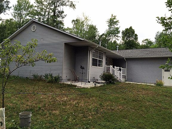 Newer 2011 Ranch style home with over 1500 sq ft. Currently a Two bedroom, 2 1/2 bathrooms with two living rooms, seller will convert it back to a third bedroom if requested. Featuring a spacious open floor plan, custom Oak kitchen with pantry & snack bar and includes all the appliances. Home also features a master bedroom suite with master bath, first floor laundry. two car attached garage, large covered deck and a 24 x 40 Pole barn. An additional 5 acres is available for a total of 6 acres for $179,900