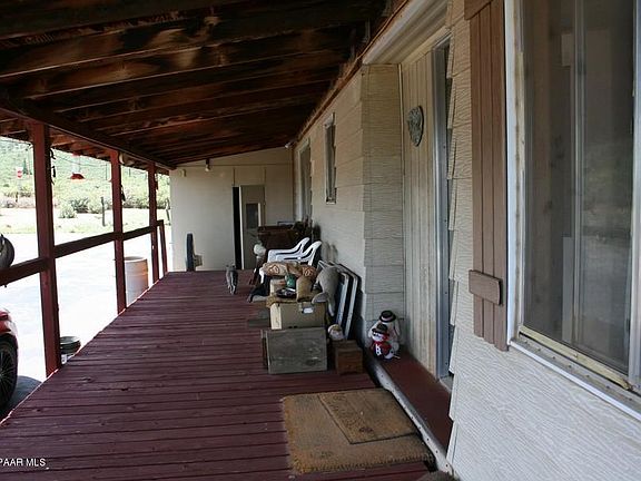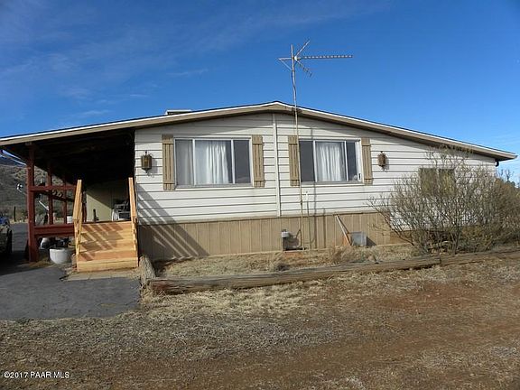 Serenity! Home on over 2 acres with lovely panoramic views of the Bradshaws and Mingus Mountain. Barn and hay storage buildings for the horses. Property is in need of some love and updating to get it back into shape, but the possibilities are endless! Back yard has fruit trees and grape vines and greenhouse with raised beds (needs repair). Circular paved driveway, newer roof (2010), new furnace in 2013, and septic system repairs (July, 2016). Stairs to front porch have just been replaced (Dec., 2016) and the hay storage building has been resided (Jan., 2017). Being sold as-is.