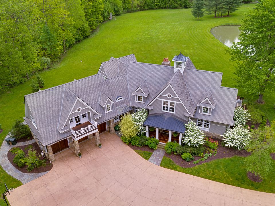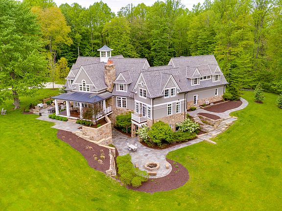Lake Auction Services Auction (Not a Live In-Person Auction). Published List Price is the "Suggested Starting Bid" and not a "Reserve Price". No Extra Buyer's Fees. Submit Offers Now because the Seller can Sell before the Auction Date. Incredible estate on almost 14 breathtaking acres. Boasting a 2-story great room with an antique barn-stone fireplace & hand-carved vaulted ceilings opens to one of many outdoor entertaining spaces. Gourmet chef's kitchen with walnut island, soapstone countertops, & Sub-Zero/Wolf appliances. 1st floor master suite includes den with fireplace, private terrace overlooking pond, & an ensuite bath with an infinity soaking tub, glass shower, marble counters, & heated floors. Two laundry areas conveniently located on the 1st & 2nd levels. Upstairs has 3 additional bedrooms w/ walk-in closets, 2 bathrooms, an additional living room, and full guest/in law suite featuring kitchen, bedroom, bathroom, living room, loft, & terrace. Lower level living room with oak floors, stone fireplace & temper-controlled wine cellar with antique warehouse door, full bathroom, workout room, craft room & recreational room. Bluestone patio and outdoor firepit as well as a fully stocked pond, tree house and zip line for those private nights on your own private oasis!
