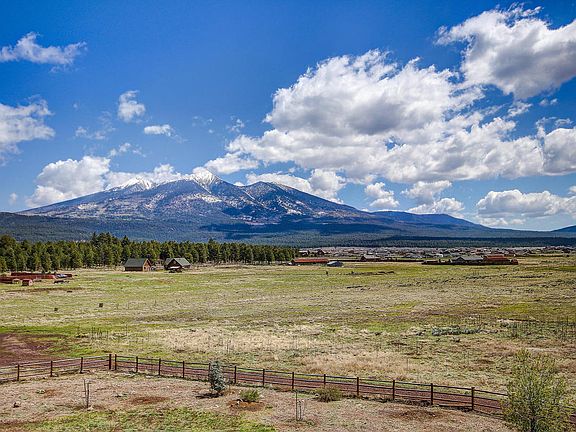 This beautiful Log Home with views of the San Francisco Peaks sits on 2 acres just West of town and minutes from the Arizona Snowbowl Ski Resort. This 3 bedroom home features 10'' logs with soaring tongue and groove ceilings and all the upgrades including slab granite counters, stainless steel appliances, wood floors and a gorgeous malapai rock wood burning fireplace. The master bedroom is upstairs with it's own loft and balcony. There are 2 bedrooms on the main floor with a full bath and the bottom level is a large game room and a full bath with a steam shower. Outside you will enjoy the views of the Peaks while sitting on the fantastic paver patio. Bring your horses as there is a Barnmaster barn.