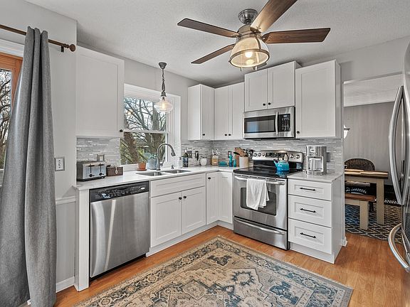 Come visit this well-maintained two-story home on a corner lot backing up to Steve Michaud Park in Lakeville. This home features an updated kitchen next to the living room with a cozy fireplace. The kitchen has great access to the large deck in the private fully fenced backyard with mature trees that is perfect for entertaining. There are three bedrooms upstairs including the oversized owner suite with private ensuite. The fully finished walkout basement has a family room and tons of storage. Professional photos will be uploaded once received.