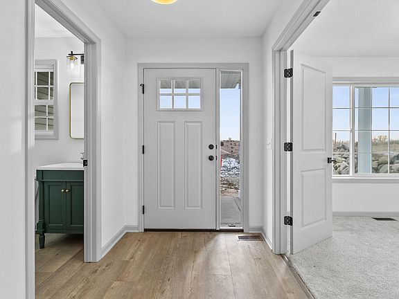 tastefully designed for the growing family with 3 bedrooms and 3 bathrooms. As you step inside, you'll be greeted by an open concept with the kitchen, dining, and living rooms creating an inviting atmosphere. Special touches have been added so its not your typical builder grade home. Cozy up to the gas fireplace in the main level living room for those cold winter nights. Stainless steel appliances, quartz countertops and a spacious walk-in pantry make it easy for the chef in your family. The primary suite boasts a private bathroom with a tiled shower and connected walk-in closet. The unfinished basement is ready for your future plans to expand. Located at the end of a street next to open land, it is great for privacy. Irrigation, Sod and basic landscaping in front of the porch will be provided in the
