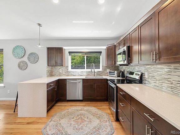 Stunning! This premium remodel is a blend of modern design with ultimate comfort. Step into a bright and open floor plan designed for today's lifestyle, featuring stylish finishes, wide-plank flooring, and a seamless flow between the living, dining, and kitchen areas. The gourmet kitchen showcases high-end stainless steel appliances, custom cabinetry with soft close doors, a waterfall quartz countertop, with oversized island—ideal for entertaining or casual family meals. The large windows and vaulted ceilings, throughout the home flood the space with natural light and showcase the inviting indoor-outdoor ambiance. Offering three spacious bedroom suites, each with its own private bath—perfect for multigenerational, co-living, or working from home in style. The lower-level has an optional family room or home office with a fireplace that invites you to productively focus or enjoy movie nights. Step outside to your covered back patio, the perfect year-round retreat for relaxing or entertaining. A dedicated pad for a hot tub is already in place, offering the ultimate spa experience under the stars. The beautifully landscaped backyard provides a private oasis with room to play, garden, or simply enjoy Colorado’s gorgeous weather.