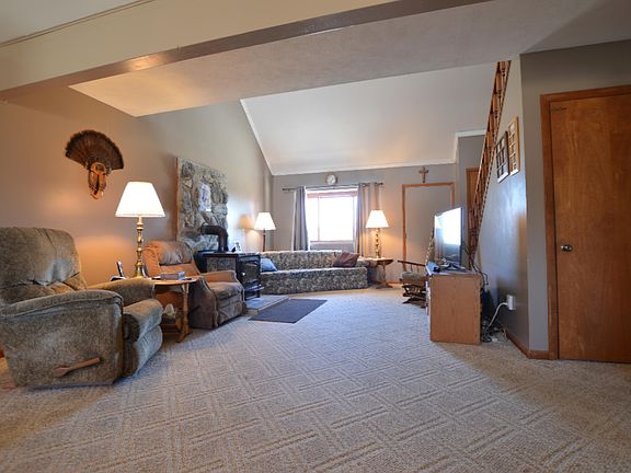 3 bedroom, 2 bath house with soaring ceiling up to the 2nd floor. Main floor laundry, 1 stall attached garage, full unfinished basement, Main floor has the open floor plan with 2 bedrooms and 1 full bath . The 2nd floor has 1 full bath , a landing area that is perfect for a study, family room. The 3rd bedroom is also upstairs and there is an extremely large, walk-in closet that just needs a window in order to be the 4th bedroom. Did I mention that this house sits on 23 acres? Yes, 23 beautiful , wooded acres, that is filled with deer, turkey, and other wild life. 2 ground blinds and 2 tree stands stay with the property The house is heated 3 ways. There is a gas forced air furnace that is 2 years old. Then there is a free standing 8400 BTU wood stove in the living room. Plus an electric heat pump that turns on when the temp is 30' or so. The heat pump also runs the central air. This heating/cooling system is very economical. In fact, the Sellers only went through 1 propane fill for 2014! That includes the gas water heater as well as the gas stove! Call for your personal showing today!