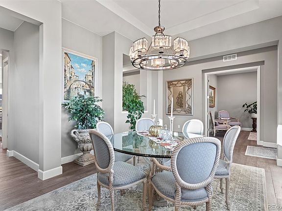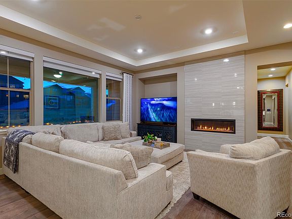 CalAtlantic perfection! This popular Bryce model will capture your heart the moment you step through the front door! High end hardwoods, impressive lighting and hand trowel texture greets you as you enter the property! The office is off the foyer to the right and the formal dining room to the left! This floor plan is extremely popular due to the amount of closet storage and the well-appointed design! The gourmet kitchen is a chef’s dream! It includes stunning cabinetry with glass display, tons of countertop space, an eat-in area, a large quartz island and an amazing butler’s pantry! The great room has beautiful floor to ceiling tile surrounding the cozy linear fireplace! Walk down the hall to the bedroom corridor where you will find a main floor laundry room, two secondary bedrooms with private en-suites and a primary bedroom featuring two walk-in closets along with a 5-piece luxury bathroom! The basement is an entertainer’s dream! Enjoy the second great room with game tables, 86”TV backed in stone with built-ins, a wet bar/kitchenette, a second primary suite, an additional bedroom, powder room and two large storage areas! You will never want to leave the basement! Your friends and family will fall in love with the low maintenance outdoor space! Relish the covered patio, the stamped concrete, raised garden bed and the built-in gas fireplace! The back yard overlooks open space with walking trails that take you to all the amenities that Sterling Ranch has to offer including: 1 coffee shop, brewery, corn hole and bocce courts, zip line park, playgrounds, swimming pool, fitness center, school, and so much more! Come and be a part of this amazing new build community where you can make lifelong memories! Sterling Ranch homeowners get a free annual State Park pass so they can enjoy the close by Chatfield reservoir and Roxborough state parks! Whether you want to entertain your guests or relax in a gorgeous and stylish home, this gem is waiting for you!