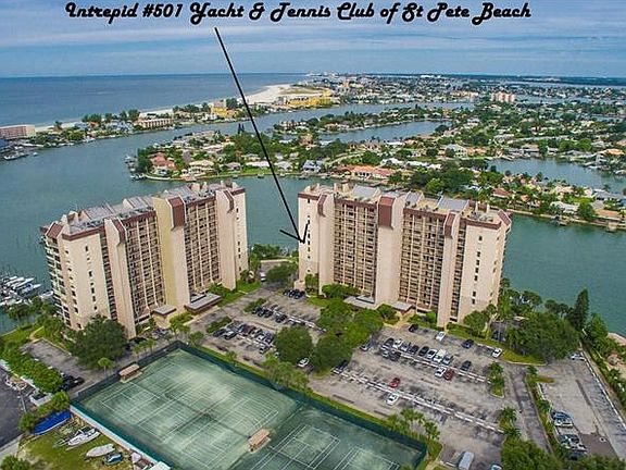 INTREPID CORNER UNIT with STUNNING WATERWAY, BEACH, GULF AND ISLAND VIEWS! Prime location and rarely available, this unit will not last! One of the BEST locations in the complex, this unit has stunning views from almost every room. The living/dining space has sliders that open to a 34' "L" walk around balcony. Stainless appliances in kitchen include: dishwasher, microwave and range. Worry free electric hurricane shutters on balcony. BONUS! UNDER BUILDING PARKING included in the sale. Yacht and Tennis Club on St PeteBeach is a gate community with marina, waterfront Olympic size heated pool, whirlpool, men's and women's saunas, 7 Har Tru Tennis courts, clubhouse with activities, all new fitness center, barbecue deck, 24 hour security and steps to beach, restaurants and shops. Are you a boater? Sail or power, the waterways and Gulf of Mexico are at your doorstep. Navigable waterways, no fixed bridges to Gulf of Mexico. Check out drone and walking tour attached to this listing!