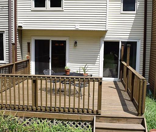 Well maintained three level townhouse with 1 car garage. Spacious kitchen opening up to living & dining rooms. 2 sliding doors open to newly completed deck. Spacious master bedroom, 2 closets (one is walk in), & attached full bath. The other 2 bedrooms are on the back on the house with a hall remodeled bathroom. Main level entrance & basement storage/laundry room. Wonderful location.