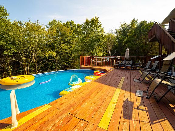 One of the most desirable locations in the area, you will find this 3 bedroom, 2 bath, clean, well maintained home only 5 miles to the famous Buffalo River and 30 minutes to Branson, Mo, and 10 miles to Jasper, Ar. This lovely home is on 4.74 ac where you can sit on the deck and enjoy an evening entertaining or swimming in the pool. The yard is nicely landscaped with ample room for children to play. Other features include two large water heaters, and lots of storage. The pool has a new liner and has a deep end as well. Beautiful rock work will greet you as you pull into the drive. All this and a storage shed on 4.74 level acres!