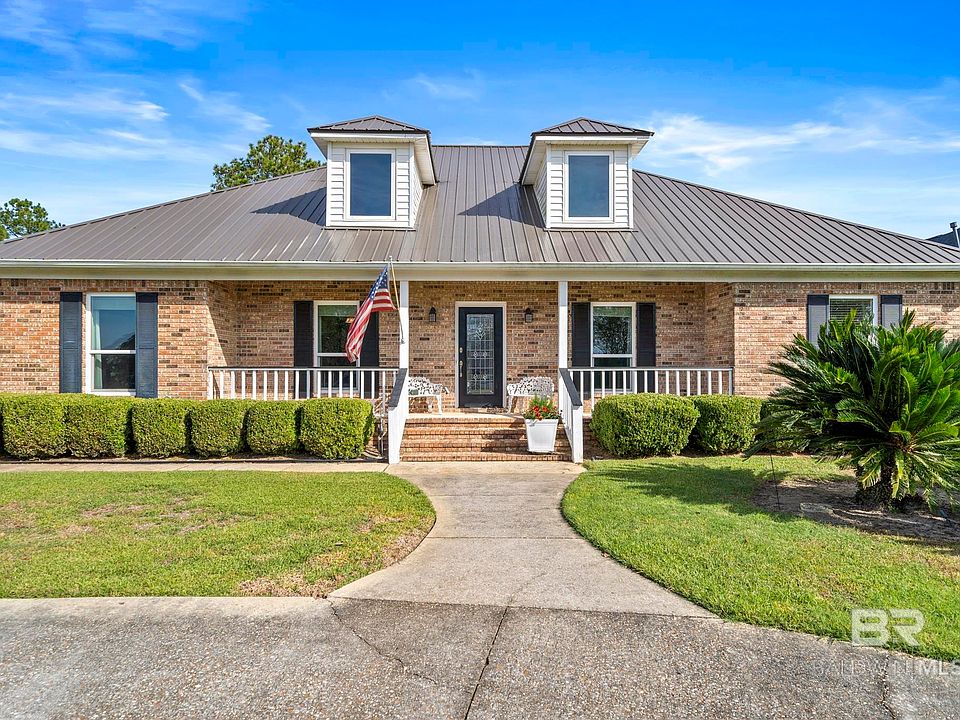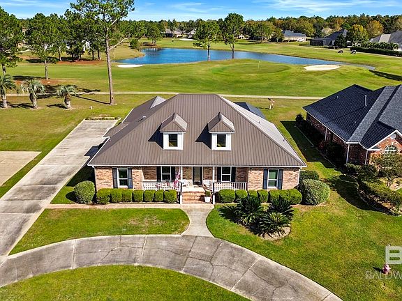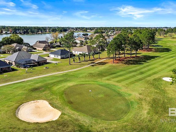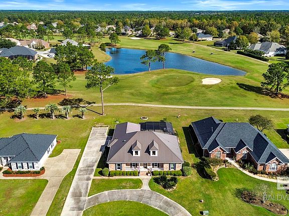 Welcome to Lakeview Estates, a desirable Foley neighborhood within the Glenlakes golf course community. This beautifully renovated custom home is situated on the 10th green of the golf course (first green of the Vista course) offering direct views of one of Alabama Gulf Coast’s premier courses and it also features an inground saltwater swimming pool with a screened lanai and access to Lake Muriel where you can enjoy kayaking and fishing. You have everything you need to take advantage of true coastal living. As soon as you pull into the driveway, you will notice its curb appeal – well maintained landscaping, nice front porch perfect for your rocking chairs, and a circular driveway offering convenience for parking. But wait until you hear about all the upgrades! New fortified metal roof and new HVAC installed in 2021, new impact windows and glass door sliders installed in 2021, Rain Bird irrigation control panel installed in 2022, new well pump and tank installed in 2023 for irrigation and auto fill on pool, all new lighting throughout, new luxury vinyl flooring, and freshly painted interior. The kitchen remodel is stunning! Kraft-Maid soft close doors and drawers, chic quartz countertops, beautiful porcelain backsplash, and new stainless appliances to include a 5-burner gas range. All bathrooms have been elegantly renovated with new vanities, new sinks, all new fixtures, and the master bath has a soaking tub and large custom porcelain tiled shower. It is gorgeous! The bonus room off the back of the home offers a built-in bar area with two mini refrigerators making it the ideal space for entertaining. Grab a cocktail and head out to your private backyard retreat where your swimming pool awaits. The pool is heated/cooled allowing you to use it year-round. The liner, pump, salt cell generator, heater/cooler, and lanai are all new as of 2021. Come experience the exclusivity of the Glenlakes community while enjoying the upgrades that elevate this home’s appeal!