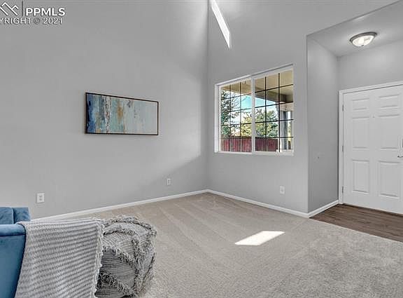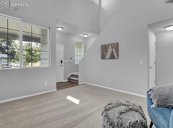Walk into this beautifully updated home nestled adjacent to a wide-open natural area. Wake up to the sweet sounds of nature coming from the wild and open space behind your cozy newly renovated home. From one window you can see the vast open area beyond the brinks of your own backyard. From the other window enjoy views of Pikes Peak and the Rocky Mountain Front Range. This three-bed, three-bath home is your chance to live in a peaceful neighborhood next to Jimmy Camp Creek in the Colorado Centre area of Colorado Springs. This home boasts a complete renovation including new interior and exterior paint and new carpets throughout, a new dishwasher, new microwave, and newly installed stovetop, washer, and dryer. The two-car garage has a 220V outlet and workbench. The grass in the front and back yard is irrigated, the backyard grass has been re-seeded and the sprinkler system is now up and running in both front and back yards so green grass is soon to come.
