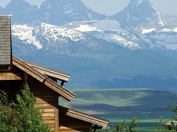 Perched above the Teton River featuring full Teton range views, sits this truly exceptional River Rim Ranch residence. High end finishes throughout, including hickory floors, stone fireplace & massive east-facing windows framing that perfect Teton view. The gourmet kitchen is a chef's dream with Viking appliances & stone slab countertops. The main floor master bedroom is a relaxing sanctuary with private fireplace & ensuite bathroom. Two more bedrooms, each with private ensuites are tucked away upstairs. Enjoy expansive Teton Valley views from the large deck. River Rim Ranch is gated with direct access to the Teton River & owner access to River Rim Lodge facilities. This property has an excellent history of short-term rentals. Enjoy 4 seasons recreation from this phenomenal home.