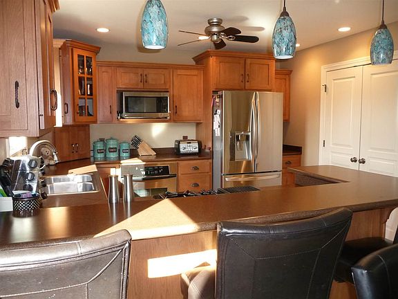 This is a FANTASTIC HOME! 2142 S.F., with a Main Floor Master Suite, Split bedroom floor plan, featuring a Daylight Finished Lower Level (making a total of almost 3000 Finished S.F.) with 9 Ft. Ceilings and a half bath on a Pondlot in Pinestone. All Brick Front with a covered Front Porch, Hardwood flooring in the foyer & dining room (used as an multi-purpose room with French Doors currently), GRABILL HICKORY CABINETS in a Kitchen that is every cook's dream with Stainless Steel Appliances, pantry, separate gas down-draft Cooktop and oven, microwave shelf and breakfast bar with pendant lighting. Spanish Lace Ceilings, Plantation Shutters, 36 inch Doorways and Hi-efficient Furnace. Walk-in Attic from upstairs or use the pull-down in the garage. Spacious Master Suite offers a trey ceiling and the Master Bath features a 5 Ft. Shower, Twin sinks in a 36" high vanity and a Separate Tub. 2 Bedrooms and a Loft upstairs with a gorgeous window wall to enjoy pond views. The loft also overlooks the Greatroom with 2-story High Ceiling. Don't miss the convenient sidewalk to the front door! Great Curb Appeal with the End-Loan Garage. Laundry Room is 8'x7'. There is a newer Pergola over a Stamped Concrete Patio with stone walls and a gate out to the pond. Move in Ready. Home is freshly painted inside and most of the carpet has been replaced. There is also a newer sump pump with a battery back-up. Seller wishes they could take the house with them~