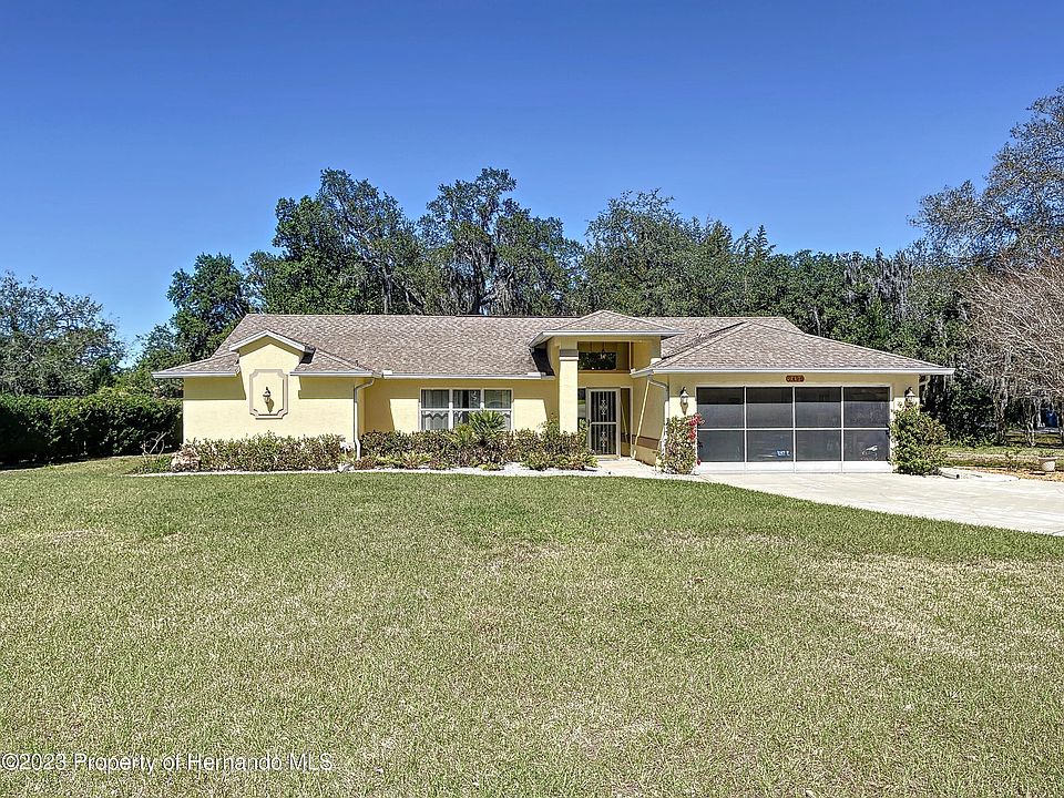 Active with contract-back up offers only. A brand new dimensional shingle roof will top this gracious, updated home before closing. This is a rare chance to purchase a meticulously maintained home on .63 of an acre in peaceful Waterfall Place. No HOA fees! This beautiful home features wood cabinets and granite counters in the kitchen, travertine backsplash and stainless steel appliances. Breakfast bar plus eat-in nook with bay window. Newer ceiling fans throughout. Popular split bedroom floor plan features formal iving and dining rooms plus family room with cathedral ceilings. Master suite features large walk-in closet and linen closet, newer luxury vinyl planking on floors. Master bath has granite counter with 2 sinks plus large tiled shower. Glass enclosed 12' x 23' Florida room has newer tile flooring and faux wood blinds, leading to a covered patio with a small area fenced in, perfect for pets. New water heater in '22. Dryer and newer washer both stay, convenient inside laundry room with sink. Neutral colors through-out. Ample closet space in all the right places. Workbench in garage will stay. 2 sheds add storage in rear in this partially fenced yard. Plenty of room for gardening, firepit, play area or even a pool. Come see this move-in ready home on a large lot in the heart of Spring Hill before it's too late!