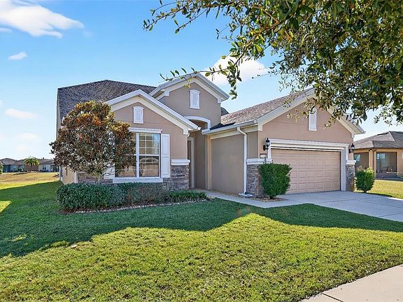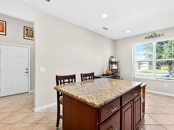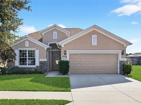 One or more photo(s) has been virtually staged. Enjoy serene Lake Weston views in this rare Willow Bend model with loft, perfectly designed for modern, resort-style living in the gated 55+ Stone Creek golf community. From the moment you arrive, a designer glass inlay front door with sidelight sets the tone for the stylish, open layout inside. The home features a bright, neutral palette accented by crown molding and low-maintenance 20x20 porcelain tile laid on the diagonal for a clean, contemporary feel. The open-concept kitchen is both functional and inviting, offering stainless steel appliances, granite countertops, staggered cabinetry, a solar tube for natural light, and a center island with bar-height seating, ideal for casual dining or entertaining. The kitchen flows seamlessly into the spacious gathering room, where expansive sliding glass doors open to a screened Florida room, creating the perfect indoor-outdoor living space with breathtaking water views. The owner’s suite is a private retreat with a generous walk-in closet and a spa-inspired en suite bath featuring a double vanity with granite countertops, a tiled walk-in shower, and a separate soaking tub. Upstairs, the loft with an additional full bathroom provides excellent flexibility, perfect for visiting guests, a media room, or a game space. Move in and immediately enjoy Stone Creek’s unmatched lifestyle, complete with championship golf, resort-style pools, a health spa, clubs, trips, entertainment, and a full calendar of activities designed for active, carefree living and golf cart paths to Lowes, Aldi, restaurants and coffee shops!. FREE APPRAISAL - Credit at closing with preferred lender now until the 1st of April!