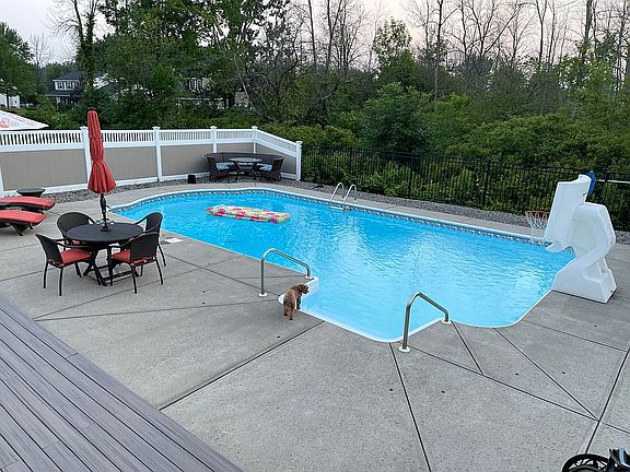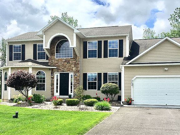 This stunning and meticulously maintained home is in the heart of the much sought after neighborhood known as Champlain at the Lake, less than 1 miles from Oneida Lake. You will bask in the privacy that this home situated on a oversized corner lot affords you. Something to revel in is knowing that you will enjoy the exclusive privacy that your Forever Wild back yard brings you. Come home and enjoy your sparkling 18 x 36 heated in-ground pool saltwater pool. Too add to this outdoor entertaining oasis is a 2-story tech-deck with a new 7-Seater Vita hot tub for those cool Upstate, NY evenings. Upon entering this home, you can’t help but be impressed by the sun filled two-story foyer that adorns you. The neutral colors throughout the entire home is enough to bring out the decorator in anyone. This home is perfect for entertaining & for large gatherings with its expansive open floor-plan. You will even enjoy this beautiful 3 car garage with its brand new epoxied garage floor. So many upgrades, this home will truly delight all of your senses.