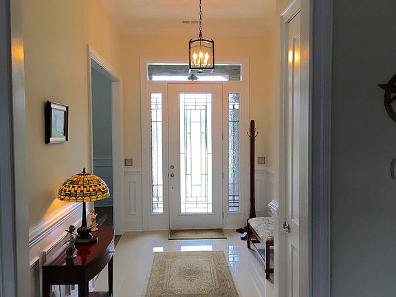 BUILT OCTOBER 2014. Plantation Lakes Waterfront 2-Story Brick House with Fabulous Lake Views. 4 Bedrooms, and 3.5 Baths. Has a large bonus room on 2nd floor that can be used as a fourth bedroom. Open floor plan with lots of windows. 10' ceilings, 13' ceiling in Family Room; 8' solid doors. Extensive crown and accent molding. Granite countertops and tiled tub/showers throughout. Coffered ceiling in Family Room; Tray ceilings in Dining Room, and Master Bedroom. Hardwood floors in main living areas, tile in bathrooms and laundry, and carpet in bedrooms. Large Family Room has a 12' wide sliding glass door that leads to Sunroom with Eze-Breeze® windows where you can enjoy your beautiful lake views. Gourmet kitchen features 42" cabinets with easy-close drawers and doors, mosaic tile backsplash, stainless appliances, garbage disposal, under-cabinet lighting, pantry, and separate breakfast nook. Oversized Master Bedroom Suite. Master Bath features a whirlpool tub, large shower with seat, frameless shower glass door, dual vanities, linen closet, and a separate water closet. Lots of attic storage. 2-car side load garage. A must see!
