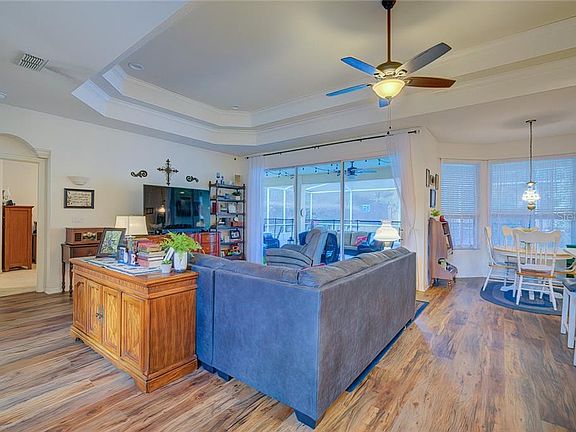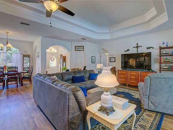 This lovely home is situated on over an acre of property in Solar Woods Estates in Spring Hill. The home features an open floor plan with luxury wood-look vinyl flooring throughout with carpet in the master bedroom and a tray ceiling in the living room. The updated kitchen has a large island with quartz counter tops and and stainless steel appliances. The master bath has dual sinks, a garden tub and a separate shower. There is an electric heated pool and enclosed screen lanai. The spacious backyard is fenced and features a large pigeon coup, a fish pond, and a covered parking area. This is a repaired sinkhole home. Call to schedule your showing today.
