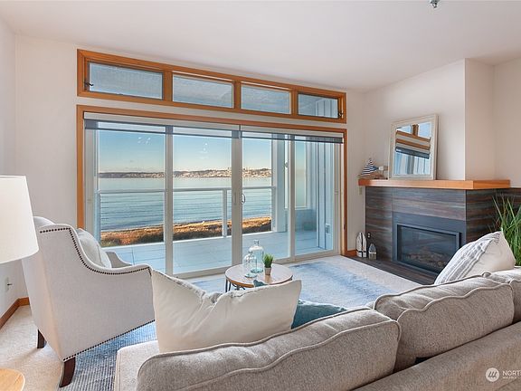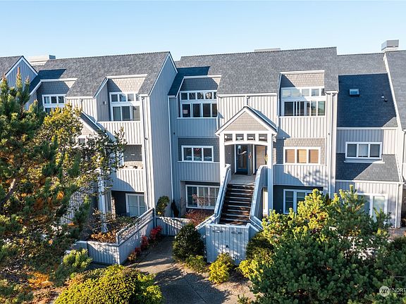 This waterfront two-story condo is located on Semiahmoo Spit, in the gated Beachwalker Villas Community. Walls of windows with breathtaking views of Semiahmoo Bay draw you in from the moment you walk through the door. You'll love spending time here with the updated gas fireplace, and an open main living area for easy entertaining. Upstairs you'll find the full primary suite with a duplicate view, a 2nd bedroom with its own full bathroom and balcony, and washer/dryer. Perfect opportunity for a work-from-home setup, a guestroom, or whatever meets your needs in the third bedroom below. The condo is just steps away from Semiahmoo resort, golf, marina, coffee shop, and all that the PNW offers! Ideal for full-time, seasonal, or vacation living.