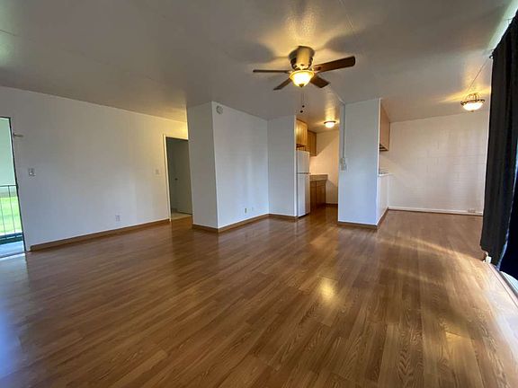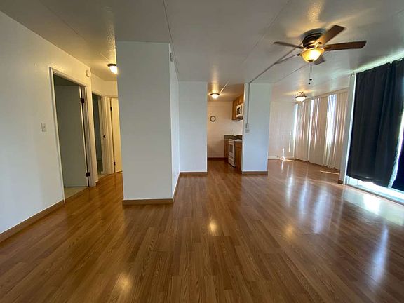 NAHOA APARTMENTS - 2 bedroom, 1 bath, 1 uncovered parking stall - Approximately 764 sq ft living area - Partly Furnished: Refrigerator, stove, and microwave hood - Utilities include water & sewer - Laminate flooring in the kitchen and living room - Carpet in both bedrooms and ceramic tile in the bathroom - Third floor - Ceiling fans in the living room and primary bedroom - Lanai - Community laundry - Guest parking - Application fee is $20 per applicant (non-refundable) - Applicants must view rental in person - All adults 18 years old and older must apply - Non-smoking unit - No pets allowed