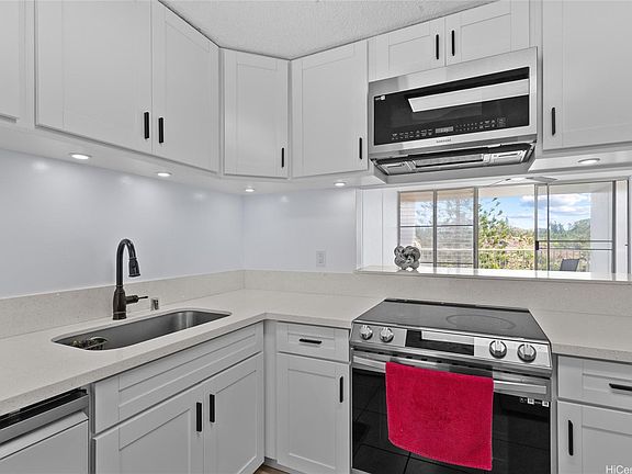 Welcome to this beautifully updated 2-bedroom, 1-bath condo in the desirable Cathedral Point Melemanu community. Inside, you'll find a newly remodeled kitchen that opens to a spacious living area, perfect for entertaining or relaxing. Step out onto the large lanai and take in breathtaking views of lush greenery, majestic mountains, or twinkling city lights. This includes 2 assigned parking stalls and in-unit laundry with a full-size washer and dryer. You'll also enjoy access to resort-style amenities such as a pool, BBQ areas, playground, park, basketball court, and volleyball court offering something for everyone. Located just minutes from Mililani Town, Schofield Barracks, Wheeler Army Airfield, and major conveniences like shopping, dining, schools, and freeway access, this home delivers both comfort and an unbeatable location.