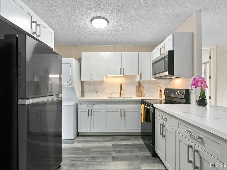 COMPLETELY RENOVATED! Come make this your new home in Mililani. This home features a brand new kitchen with beautiful quartz counters, new cabinets, new fixtures, new vinyl plank flooring throughout, just freshly painted, new ceiling fan. The entire bathroom was remodeled with new vanity, newly tiled shower, new fixtures, new lighting, new mirror. There is also a spacious walk-in closet in the bedroom. TWO COVERED PARKING STALLS included with your new home! A spacious lanai overlooks the park with a playground and basketball courts. Amenities include Community pool, recreation area and BBQ areas. So close to all conveniences - Mililani Shopping Center, Mililani Town Shopping Center, schools, bus stops, freeway access, and military bases Wheeler and Schofield. Hurry and make this beautiful home yours!