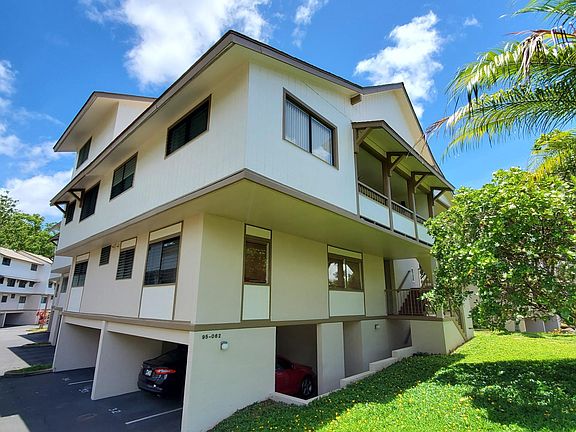 Kuahelani Apartments - 2 bed, Mililani Rare 2nd floor single level CORNER end unit in Kuahelani Apartments, Mililani Town. Very quiet mature landscape setting. The vaulted and high ceilings make this townhome extra special. Bright, cool and impeccably maintained. This thoughtful floor plan offers 2 bedrooms, 1 full bath, plus a 1/2 bath in the master bedroom, a covered lanai, 2 parking and a large storage room behind the covered parking stall. Brand new dishwasher, water heater and tile tub surround. The entire complex was painted in 2021 and roofs were replaced in 2016. There is a beautiful recreational center with a clubhouse and swimming pool. FULL size washer & dryer are in the unit. Bonus for golfers, a paradise with the Mililani Golf Club, practice range and restaurant nearby. Rarely available 2 Bedroom, 1.5 Bathroom, 2 parking stall (1 open, 1 covered) unit offering 917+ sq. ft. of interior living area plus 73+ sq. ft. of open lanai and 72+ sq. ft. of separate storage area in a quiet mature landscape setting! Approx. Space 1062 sq. ft. Amenities inc.: Pool, BBQ, Club House, and on premise Resident Manager! Next to Mililani Golf Course! Convenient location! A huge storage room behind the covered parking stall. Uncovered parking stall visible from unit. Lanai access from the living area and main bedroom. Wonderful air flows throughout. Own stairway landing. Renovated / NEW: New dishwasher installed, Bathtubs/Showers: New shower tile enclosure and shower fixtures installed, New Floors/Floor Coverings, New bathroom ceiling exhaust fan installed 2021. New water heater installed. NO Carpet easy to maintain and clean. This unit is partly furnished and well-maintained - NEW PAINT. Private 2nd floor corner end unit with its own landing and lots of windows throughout. Vaulted Ceiling throughout. Rental by owner NO MIDDLE PERSON to deal with. ** NO PETS, NO SMOKING. Rent includes sewer and water. No Sub-Leasing. Lease Term: More than 1 year preferred. More Photos available upon request. RARELY AVAILABLE.. MUST SEE ! Leave a message, sometimes I don't get a signal at my work. Available Now ! Rent includes sewer and water. No Pets and No smoking. 1 covered parking stall next to Large Storage. Rental by Owner (no middle man). NO Subleasing. Lease Term more than 1 year.