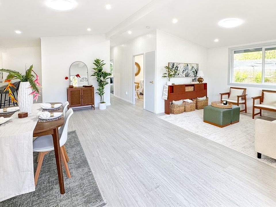 Welcome to your home in paradise! Discover this modern and gorgeous home. Nestled in an established neighborhood with long time home owners. Completely upgraded with high end finishes. Brand new kitchen with quartz counter tops and high polished cabinets. Beautiful vinyl flooring. Spacious open floor plan with two en-suite bedrooms. Split AC system to offer year round comfort. Expansive landscaped yard and fully fenced for privacy. MUST SEE!