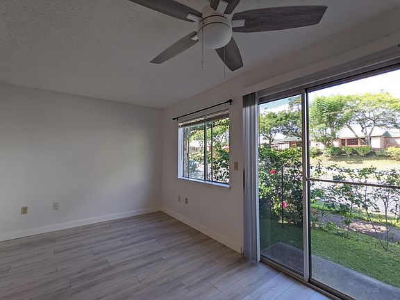 Recently renovated, clean, and painted 1/1 ground level unit in Kumelewai Gardens I. Features newer vinyl plank flooring and newer kitchen and bathroom cabinets/counters. Washer/dryer in unit and window A/C in bedroom. Reserved parking stall is right in front of the apartment. Conveniently located across from mauka grade school, a block from neighborhood shopping, and walking distance to Mililani District Park. Includes water/sewer; tenant is responsible for electricity, cable, internet. Renters insurance is required throughout tenancy, and no pets/smoking in the unit. Tenant responsible for electricity, cable TV, internet, landline. No pets, no smoking in the unit. Minimum 1 year lease term. There is an application fee of $30.00 per adult, for the background check. 1 reserved parking stall located in front of the rental unit. Guest parking is available.