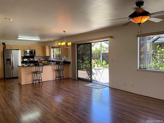 A Walk-Thru Video of the interior and backyard was created for your convenience. This home has an EXTRA BONUS ROOM upstairs. Bonus Room can be a Home Office Space, Extra Entertaining Space, or place to do Homework. Open layout in the Kitchen, so everyone can add their cooking talents prepping on the Corian Countertops. Stainless Steel Appliances that include a Dishwasher and Hood Microwave, for those days and nights when eating and cleaning need to be effortless. Off the Kitchen is the Living Room, so everyone is included in this Open Living Floor Plan. All carpet has been removed from the 1st floor. Now, activities (grilling and expanding dining space) from your Enclosed Backyard are done absent concerns of carpet stains. No need to pull out the lawn mower, landscaping is INCLUDED. Aloha
