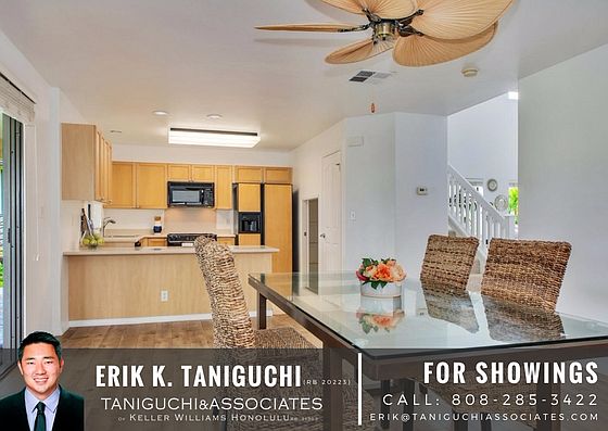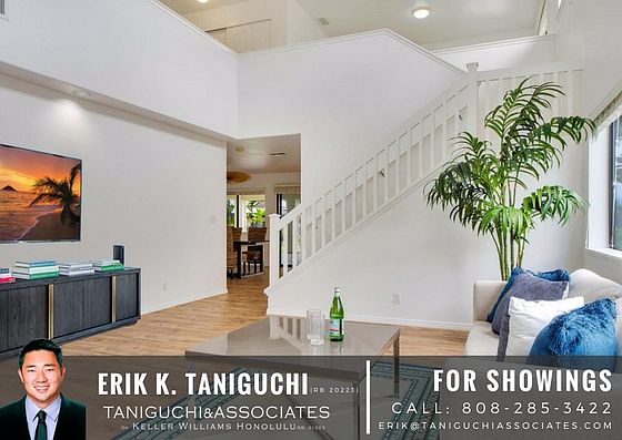 Highly Desirable Mililani Mauka! 3 bdrm, 2.5 bath home on Cul-de-sac in quiet neighborhood. High ceilings in living room, central A/C, large covered lanai with slate flooring. Beautifully landscaped, enclosed back yard with moss rock wall, wrought iron gate, sprinkler system and landscape lighting. Views from lanai. Upgraded wood laminate flooring, windows, ceiling fans and blinds. Upstairs loft and large water heater!