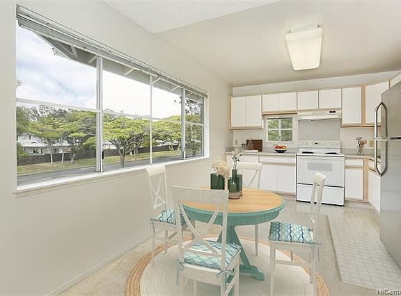 Well maintained, freshly painted breezy top floor 1 Bed corner end unit, with stackable washer & dryer, newer stainless steel refrigerator, brand new ceiling fan and lovely garden views. Large sliding windows in the living/dining space lets in a ton of natural lighting. 2 PARKING STALLS are conveniently located near your front door. Close proximity to Mililani Mauka Elementary School, regional parks, shopping centers, entertainment, & freeway entrances. As a Mililani Town Association member you can enjoy the numerous pools, recreation centers, tennis/pickle ball courts & gyms. To be strictly Sold As Is. One or more photos have been enhanced. 2021-10-29