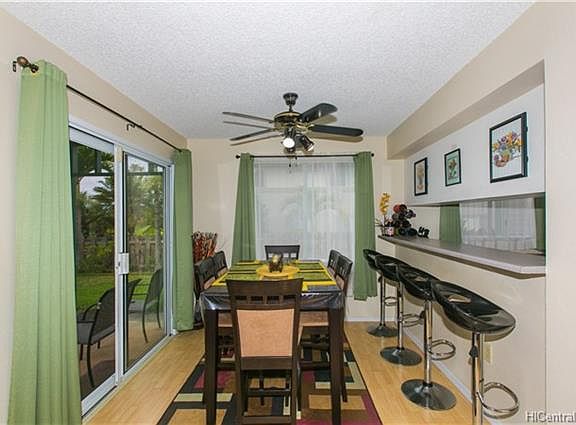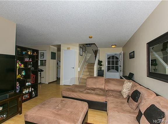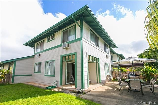 Enjoy the cool climate and peaceful surroundings at the "Kuulako Phase 2" development in Mililani Mauka. This very clean, well maintained, corner end townhouse, is carpeted upstairs, and has tile, laminate, and vinyl flooring downstairs. Located on the edge of the development, your backyard fronts a wooded area providing a tranquil atmosphere to relax, bbq, or to entertain friends and family. Take advantage of Mililani's many recreational centers. Have a refreshing walk on the walking path just below your backyard. Get all of your shopping done at the nearby Mililani Town Center. Easy on off highway access in both directions for town and country. 6 guest parking stalls are located directly across the lane.