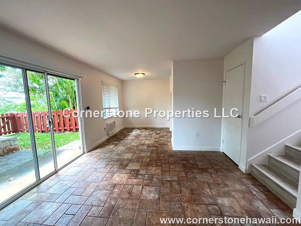 Enjoy living in this partially furnished, 2 bedroom, 2 bathroom, 2 parking townhouse at the Kuulako Phase 2 in Mililani. This unit is near bus line, schools, park, shopping center, park, military base & restaurants. PROPERTY DETAILS: - Unit Type: Townhouse - 2 story, Split-Level - Approx. Square Footage: 799 - Year Built: 1995 - Bedrooms: 2 - Bathrooms: 2 - Parking: 2 Uncovered Stalls UNIT FEATURES: - Laundry Center - Disposal - Refrigerator - Electric Stove/Oven - Microwave Range hood - 2 AC in Dining Room & Primary Bedroom - 2 Ceiling Fans in Bedrooms - Dining in Living Room - Patio lanai off Living Room - Fenced landscaped yard - Storage closet - Electric water heater - Window Coverings: Curtains, Vertical & Horizontal Blinds - Flooring: Ceramic & Vinyl AMENITIES: - Guest Parking - Mililani Town Association (MTA) access upon request UTILITIES: - Included: Water/Sewer - Tenant Responsibility: Electricity, cable, internet, phone, yard service, pest & gas (if applicable). LEASE TERMS: - No smoking - Pets negotiable to one (1) pet max under 25 lbs. - Available Date: 12/17/2024 - Lease Length: 6 months 1 year - Professional cleaning required upon move out by an approved vendor of Cornerstone Properties. - Renter's insurance required: with $300,000 liability coverage and Cornerstone Properties listed as additionally insured/interest. - All adults 18 years old and older must apply. - Application fee: $35 (Non-refundable) PROPERTY CODE: 1362REA Cornerstone Properties, LLC: RB-20789 *DISCLAIMER: This property is pets negotiable. Pets within the following parameters will be considered: 1 pet under 25 lbs. Please be advised that upon approval of your application, at the time of signing a lease, a pet deposit will be due (up to one month's rent) along with the security deposit, and proof of a current renter's insurance policy. T