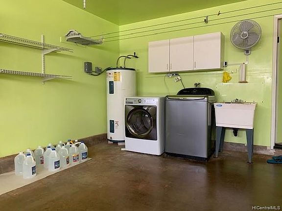 Two story detached single family home in great neighborhood PV system; low electric bill Located in Mililani Mauka in a Cul de sac (low traffic) Entirely walled lot Berber Carpet Bull nose interior corners Interior gloss paint partial tinted windows AC in every room/ dedicated AC plugs Cultural Marble bathroom tub walls installed additional towel racks Cast iron bathtubs Shower handicap rails Installed book shelves/cabinets in garage Tack lighting living room Landscape with water drain Solar Panels (36 panels) Low electrical bill rain gutters Water heater on timer Exterior painted Includes: 2 refrigerator, 1 freezer, washer\dryer, stove dishwasher (don't use\unhooked) Yard service included in