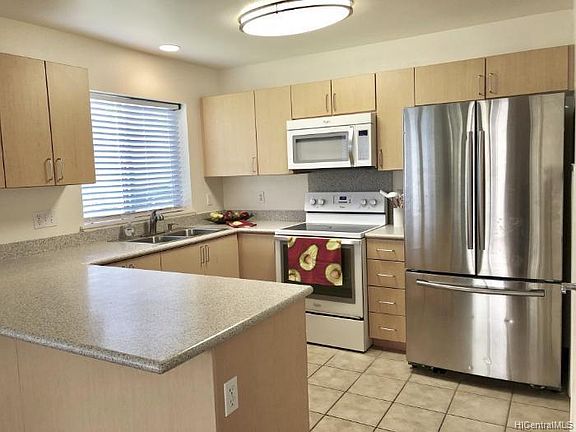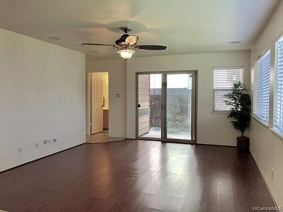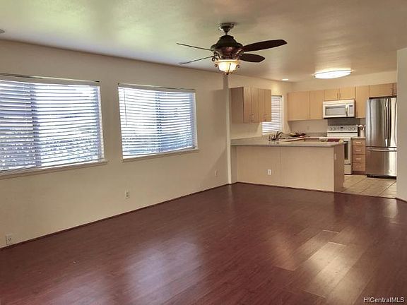 Bright and spacious 4 bedroom/2.5 bath/2 car garage single family home in desirable Mililani Mauka. Open downstairs floor plan: enter into living and dining area with kitchen and half bath. Kitchen boasts double refrigerator, new dishwasher, and two pantry closets. Wall to wall carpet in bedrooms, brand new wood laminate downstairs, and ceramic tile in kitchen and bathrooms. Mirrored closet doors, window blinds, and ceiling fans in bedrooms. AC units in master bedroom and second bedroom. Large walk-in closet in master bedroom with private bath and dual sink vanity. Enclosed backyard and spacious outdoor patio area. New washer and dryer. Fresh exterior paint. Close to schools, shopping centers, restaurants, market, banks, theaters and Rec 7. No pets. AVAILABLE JULY 20th.