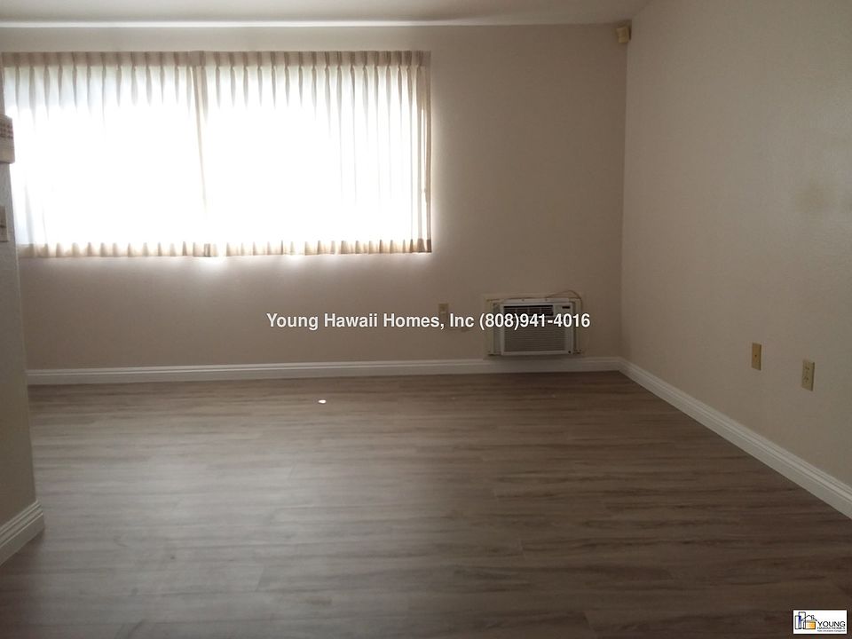 Clean one bedroom unit in Mililani Mauka. New flooring, a/c in bedroom and living room. Basic cable, water and two assigned parking included. Stack washer/dryer in unit. Call Young Hawaii Homes, Inc. for showing appointment. No pets and no smoking.