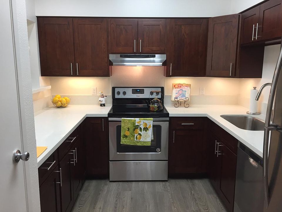 Beautifully renovated large 2 bedroom, 1 bath unit in the Kumelewai Court Townhomes. Everything is brand new! The renovation included new kitchen and bath cabinets, quartz counter tops, electric range/oven, refrigerator/freezer, dishwasher, garbage disposal, vinyl plank flooring throughout, window blinds, 3 ceiling fans with light fixtures and completely painted throughout. Also has a full size washer/dryer and a split system air conditioner in the living room. Master bedroom has walk-in closet. Water, sewer, trash removal are included. Occupants need to cover electricity and cable service. 2 parking stalls, 1 covered. Sorry, no pets or smoking. Great location, quiet area with exceptional schools and conveniently near shops, restaurants, bus line and freeway. Also, very close to Wheeler and Schofield military bases. Access to open grassy play area behind unit. Check it out, you'll be pleasantly impressed! Monthly rent of $2,100 plus security deposit of $2,100. One year lease term and available 1/1/2019. Please respond via email or call 625-8863 for more details and viewing. Thank you. Tenant pays for electricity and cable.