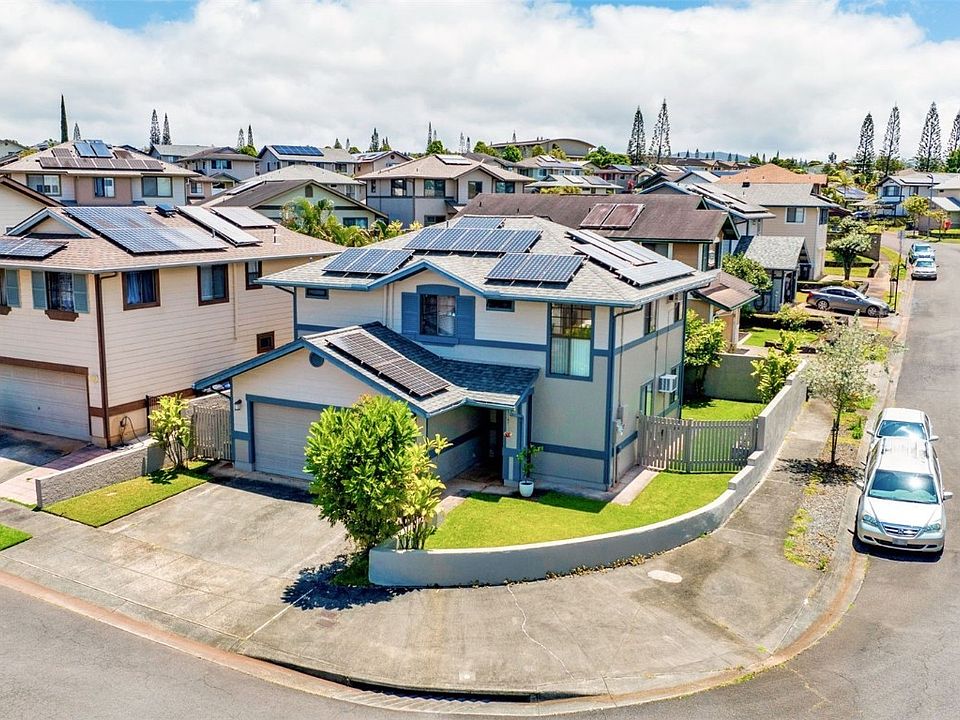 Welcome to the desirable community of Destiny II in Mililani Mauka. This two-story home features 31 OWNED PV panels, a well manicured private yard, split AC, solar water heater, 2 car garage and has a terminex termite guarantee warranty. An open concept layout w/all 3 bedrooms upstairs with a bonus area to lounge or turn into a fourth bedroom. Mililani Mauka, known for its great schools, cooler climates and rec centers make this home the perfect place for growing families who are looking for an active community. Conveniently right down the road from pools, parks, schools, shopping area and restaurants. Home is priced to sell now!