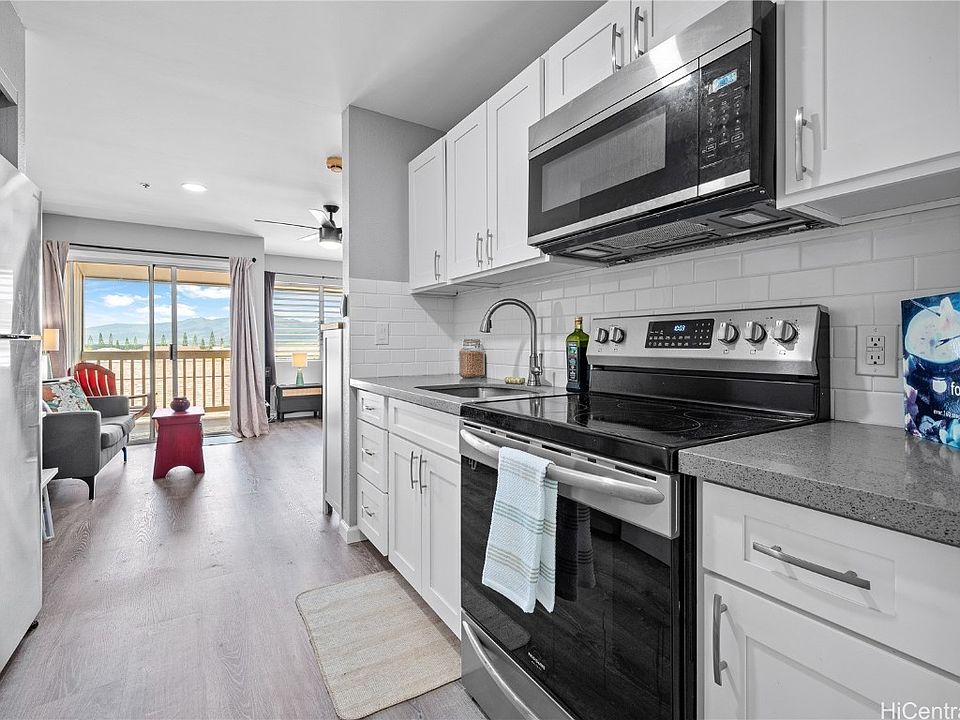 Enjoy fantastic mountain and sunset views from the breezy lanai of your spacious studio in the pet friendly and gated community of Olaloa, Hawaii's vibrant 55+ community! Unit has been upgraded with newer flooring, paint, kitchen cabinets, Quartz counter tops and stainless steel appliances that are only a couple of years old. LOW HOA fees include basic cable, internet, sewer, water, and use of the washers and dryers that are right around the corner. Your association fee with MTA includes use of their 7 rec centers w/ pools! Have fun and meet your neighbors by participating in Olaloa's numerous daily activities. Their community center also houses a resident manager's office, library, dining area, thrift shop and gym. Love gardening? There is also a garden area in which you can rent a plot to grow your own plants and vegetables. Unit is on the second floor but there is an elevator. Great location close to Longs, Starbucks and the Mililani dog park. Residents must be 55 years or older, but no age restrictions on ownership. Furniture may be negotiated to stay so just move on in! Special insurance assessment of $872.80 will be paid off before or at closing by the seller.
