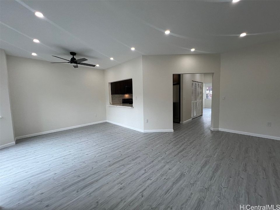 Welcome to this newly renovated 2-bedroom, 1-bathroom condo in the highly desirable Mililani Mauka neighborhood at Kumelewai Court. Updated this year with brand-new appliances, this home offers a fresh and modern feel. The living area is bright and spacious, perfect for relaxing or hosting friends and family and features high ceilings. The kitchen has plenty of cabinet space and a sleek, updated look that’s both functional and stylish. Both bedrooms are generously sized, filled with recess and natural light, and designed to feel warm and inviting. This unit features new paint, flooring, recessed lights throughout, new window AC, ceiling fans, mirrored closet doors, and all new stainless steel appliances. The bathroom features modern finishes and thoughtful upgrades. You’ll have one covered and one open parking spot, plus plenty of guest parking for visitors. Located close to parks, schools, shopping, and dining, this home is perfectly situated for convenience and community. Whether you’re a first-time buyer, an investor, or looking to downsize, this condo is a fantastic opportunity!