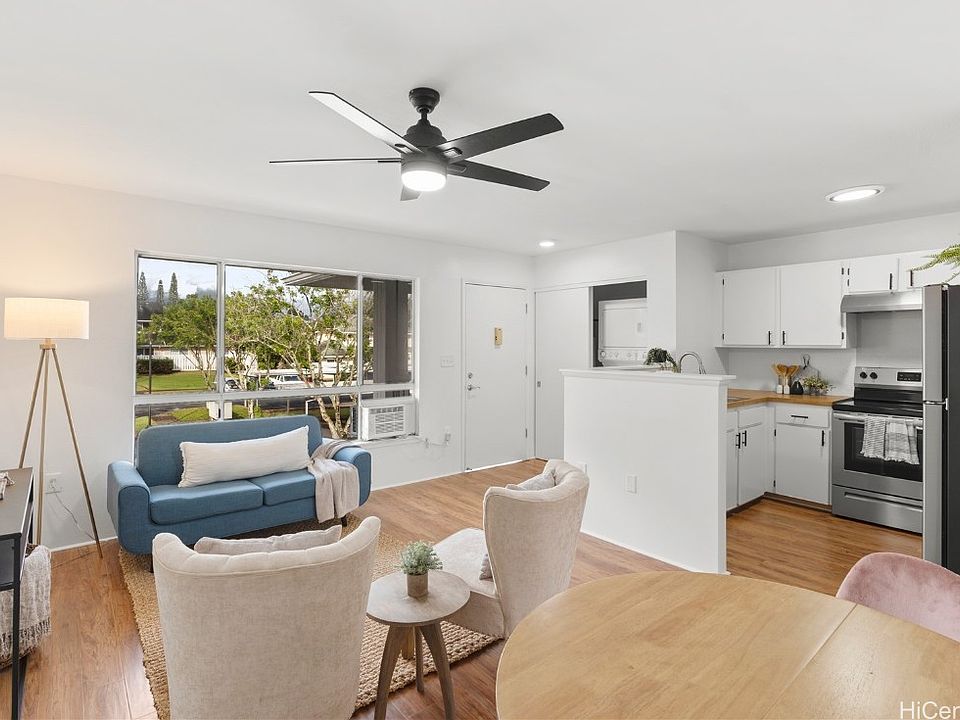 Tastefully remodeled 2 bedroom 1 bath in Havens of ii Vista. Brand new waterproof laminate flooring, stainless steel appliances, modern butcher block countertops, and new paint throughout, highlight the upgrades. Nearly $50K put towards renovations and upgrades! The full bathroom remodel includes flooring, new vanity, completely refurbished shower/tub, new toilet, cabinets and lighting. Located in the rarely available, highly desired, GATED community in Mililani Mauka. Near shopping centers, restaurants, and several community parks.