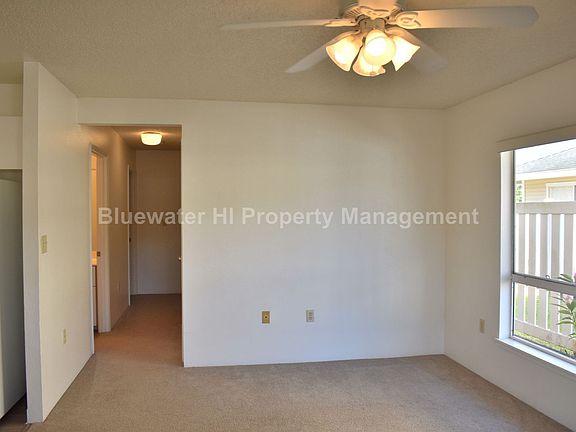 Havens I'I Vistas II (Mililani Mauka) Partially Furnished 2 Bedroom, 2 Bath, 2 Parking Stalls $2600/Mo FEATURES Property Type:Townhome Year Built:1999 Unit Sq. Footage:802 (Approximately) Bedroom:2 Bed Bathroom:2 Bath Parking:2 reserved stalls (one covered / one uncovered) Lease Duration:1 year minimum Deposit:$2600 Pet Policy:No pets DESCRIPTION This partially furnished 2 bedroom, 2 bath townhome is located on the ground floor at the Havens I'l Vistas. The unit features: plank vinyl flooring in the kitchen, bathrooms and entry way, carpet in the rest of the unit, window AC in the living room, washer/dryer, outside storage closet & mini garden. The complex is gated & has lots of guest parking. Conveniently located in Mililani Mauka, near to Wheeler Army Airfield, Schofield Barracks, dining, entertainment & parks. Monthly yard service, water & sewer included. No animals & no smoking. Renters insurance is required. Available Immediately Non-refundable application fee is $27.00 per adult For more information or to schedule a showing please contact: Chad Nakagawa Bluewater HI Property Management LLC