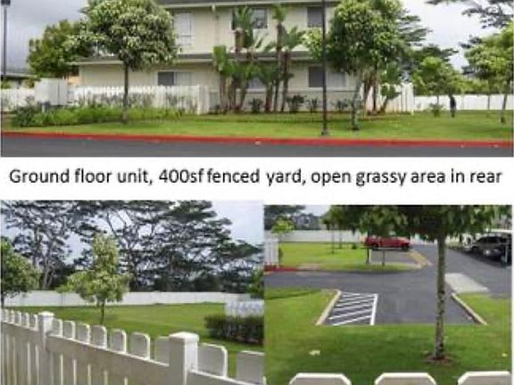 Haven's I'i Vista, 3 bd/2 bath ground floor unit in a secure gated community in Mililani Mauka. Corner unit has a 400sf fenced yard for BBQs and entertaining. Open grassy area behind the unit, 2 assigned parking stalls fronting unit; 1 covered parking/1 open stall with lots of guest parking in back. Kitchen has laminate wood flooring, Refrigerator w/water dispenser, Microwave Oven over Range, Dishwasher, Washer/Dryer, A/C in LR and Main bdrm, Ceiling Fans & Window Blinds. Close to schools, shopping, theater, restaurants, recreation centers and quick freeway access. Home has been freshly painted and recently re-carpeted. Available after August 1st. Application fee: $30 Lease 6 months plus. No pets, no smoking. Rent includes yard service and water.