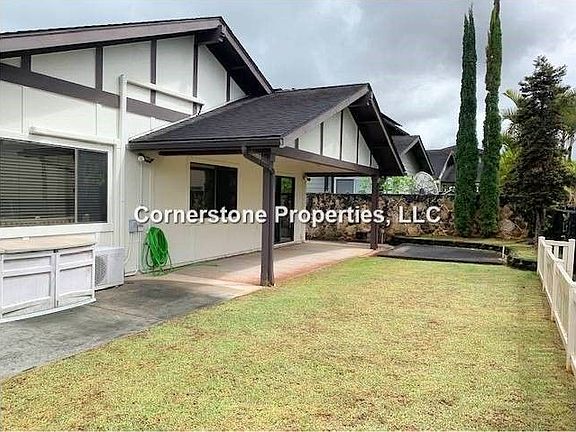 Mililani Mauka 3 bedrooms / 2.5 bathrooms / 2 parking in garage, plus 2 additional rooms. Partly Furnished. Newly painted interior and exterior. Includes full sized washer/dryer, disposal, refrigerator w/ ice maker, electric stove/oven, split a/c, ceiling fans in every room, formal dining room, kitchen w/ island and pantry. Other Items include landscaped fenced yard, open covered patio, storage closet in backyard, horizontal blinds, curtain rods, carpet, vinyl flooring, electric water heater, and security alarm system. Amenities: access to MTA recreation centers. Near bus line. Utilities include yard service. Pets Negotiable! Call Cornerstone Properties LLC (RB-20789) at show contact info to inquire.com Applications are $25.00 per adult 18+ years old Non-Refundable. CODE: 1286ABE Please 'Like' and follow us on our Facebook page.