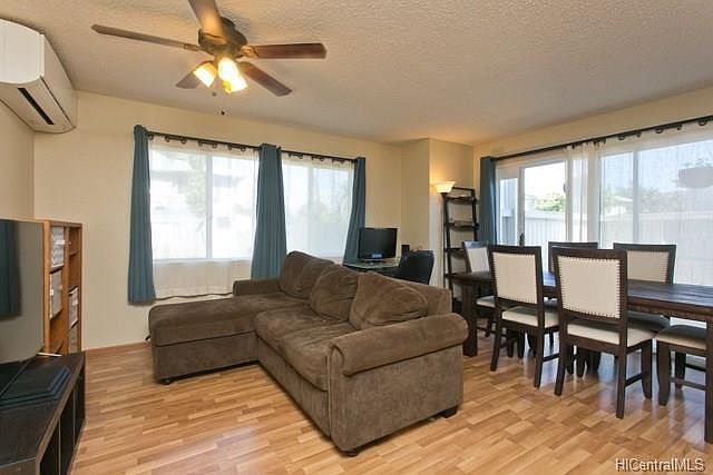 Rarely available ground floor unit in highly desirable Hillsdale II complex here in Mililani Mauka. This 3 bedroom 2 bathroom town home comes with 2 parking stalls and a private court yard for you to enjoy. Lots of street parking and guest parking available for family and friends. Unit has been well-maintained and move-in ready. Home includes split AC units in the master bedroom and living room, granite kitchen counter tops, upgraded cabinets, laminate flooring, new vinyl flooring in bathrooms and brand new vanities in both bathrooms. Conveniently located to freeway access, Mililani Mauka Shopping Center and Scholfield. Come and see what this unit has to offer.