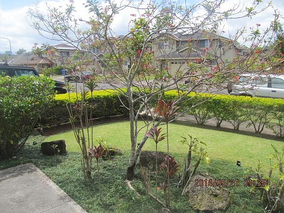 Beautiful 4b/2.5b in highly desired Mililani Mauka. Awesome large fenced yard which is maintained by professional landscaper @ owners expense. Satellite Dish ready. Unit has tile downstairs & carpet upstairs. Lots of room. A must see!Call Nani for showings: 699-3900Owner does not accept sec 8
