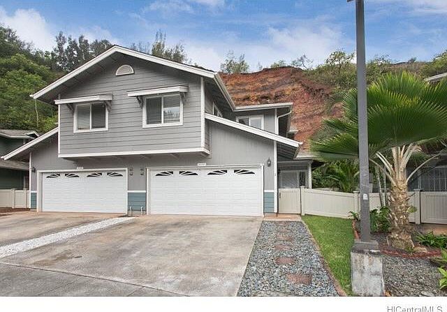 Woodcreek Crossing duplex - Rarely available and Move in ready - fresh interior paint, lovely tile flooring downstairs and wood laminate upstairs. Spacious master suite features volume ceilings and a walkin closet. Handy office nook in the upstairs hall is a great bonus. This home is equipped with PV (owned). Fully fenced yard. 2 car garage. Very convenient to Schofield/Wheeler. Tucked away in Launani Valley, this property feels worlds away from the hustle and bustle of the city.