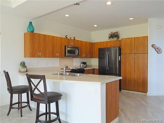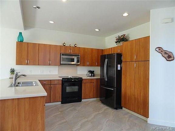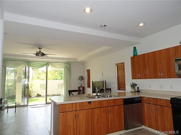 Come home to a beautiful American Classic 3! A top Mililani Mauka corner home on a quiet cul-de-sac. Adorned with fresh and tropical landscaping leading to a slate stone entry and beautiful rock Koi pond in the yard for your relaxation. The home has cool tradewinds and sought after floor plan with one bedroom and one bath on the main floor, XL master bedroom with large walk-in-closet system, upgraded laminate wooden floors and tile throughout, stainless steel appliances, owned 16 PV panels and 4 water heater solar panels. Come and be part of an award winning school and community with Rec Centers, pools, parks, shopping, activities and more. Must See! **Open House Sun, April 22 from 2-5pm**
