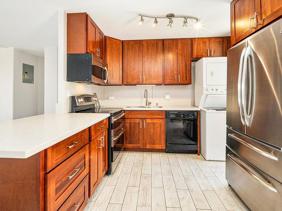 Upgraded condo consisting of 2 bedrooms, 1 bath and 2 parking stalls including a washer and dryer in the unit. Enjoy the high floor location with lush green tree top views from the spacious lanai and the cool side of the building with trade breezes. Condo building is Northbrook Melemanu with great amenities of pool, recreational area, BBQs and open green space. Located in short distances to Wheeler Army and Schofield bases. Mililani shopping center, golf course, theaters and many more essentials of the Mililani neighborhood. Address: 95-2031 Waikalani Place # D901, Mililani, HI 96789 ONE PET WELCOME! Rent includes water and sewer utilities. Tenant pays for electricity, cable TV and internet. Owner pays for sewer and water utilities.